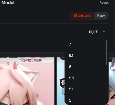Midjournyは、歴代の生成モデルを選択できるのが良い点です。