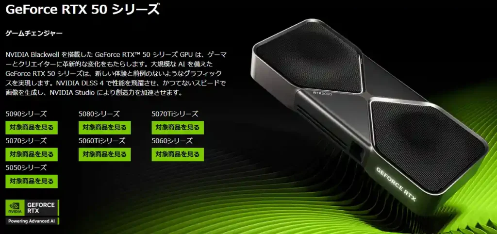 今回は、2025年に登場した最新モデル「NVIDIA GeForce RTX 50シリーズ」の中から、