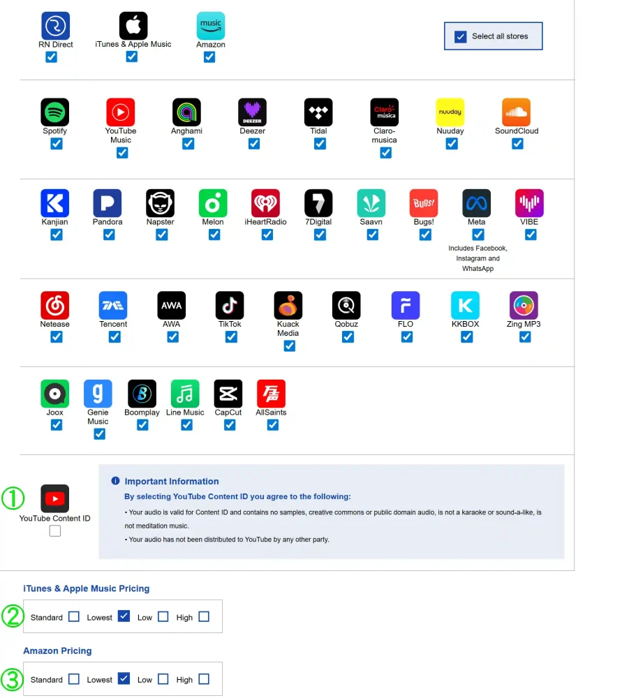 - 結論: 1つのストアに絞らず、「RouteNoteですべての主要ストア(Select All Stores)」に配信し、PUSH.fmのスマートリンクで案内するのが、収益と認知度を最大化する正解です。特に日本ではLINE MUSICもシェアが高いため、配信対象に含まれているか確認しましょう。