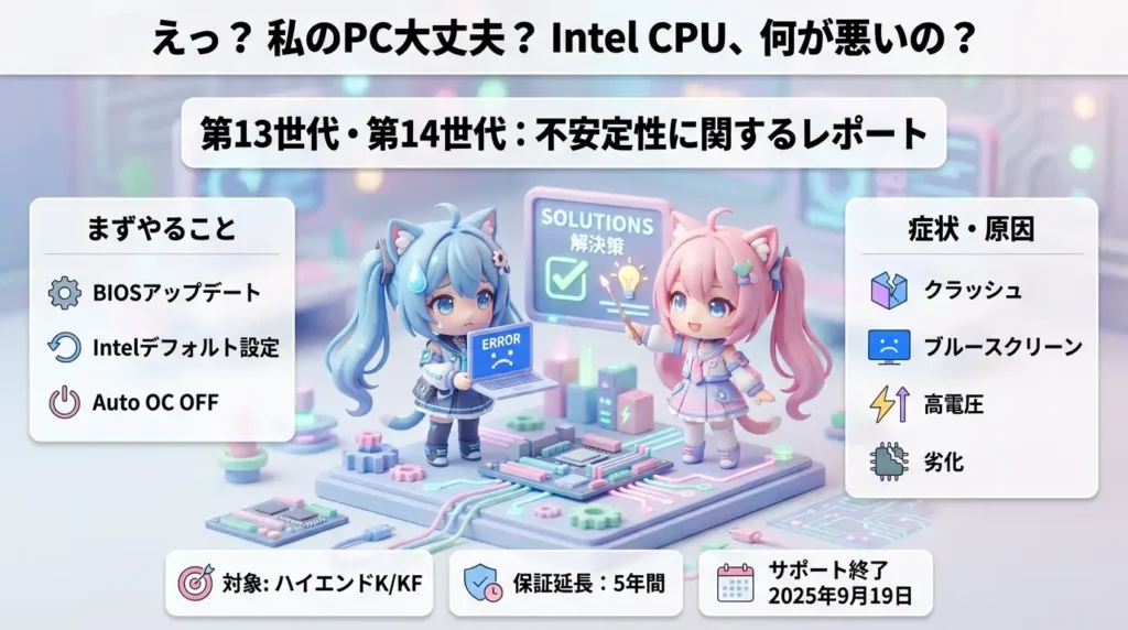 今後もIntelの発表やマザーボードメーカーのアップデート情報を確認し、適切な対応を行うことが重要です。