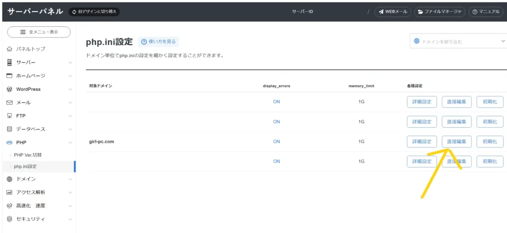 https://secure.xserver.ne.jp/xapanel/login/xserver/server/ - 「PHP」カテゴリの「php.ini設定」をクリック